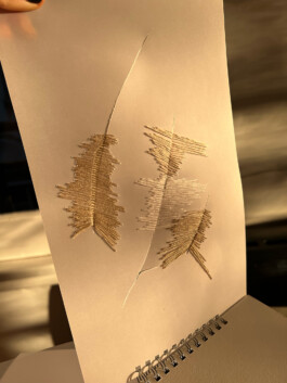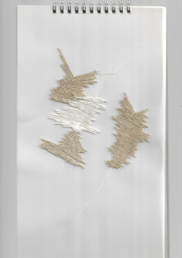 La intervención consiste en generar rupturas en los papeles y con hilo orgánico de algodón los vuelvo a unir.