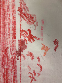 La superficie orgánica del papel de arroz hace que la tinta penetre en sus fibras y los trazos resulten más “despeinados” producto de la absorción del tejido del papel.